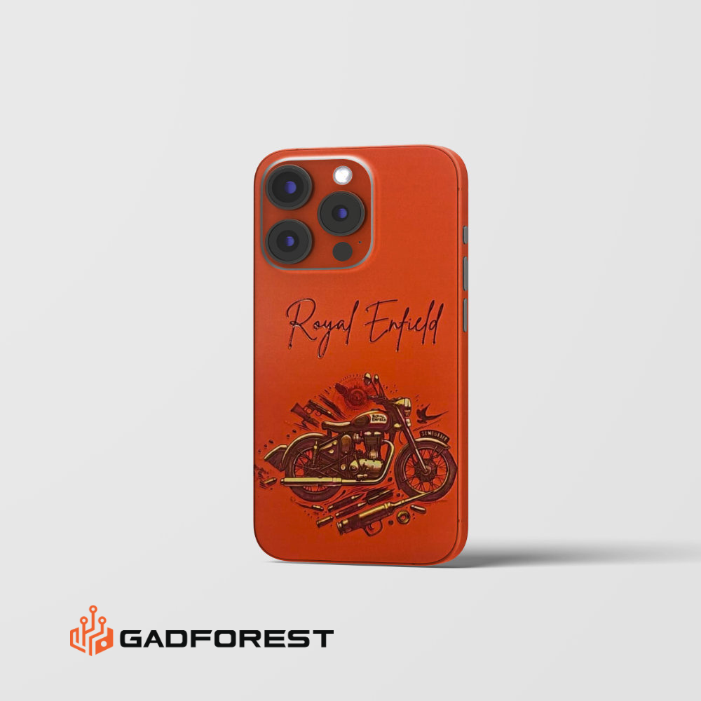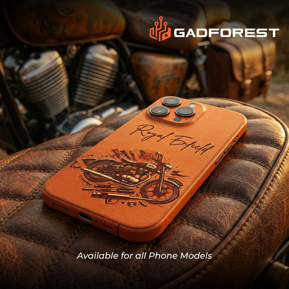 Pay tribute to a classic with this Royal Enfield motorcycle wrap, featuring a deep 3D embossed texture on the bike and the vintage typography. Whether you have an iPhone or Android, this wrap is available for all mobile phone models. The physically raised engine and frame details provide a rich, tactile experience that motorcycle enthusiasts will love.